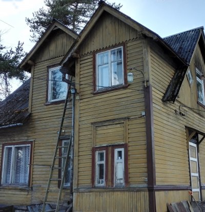 Kahekordse puitmaja fassaadi vahetus ja soojustus.