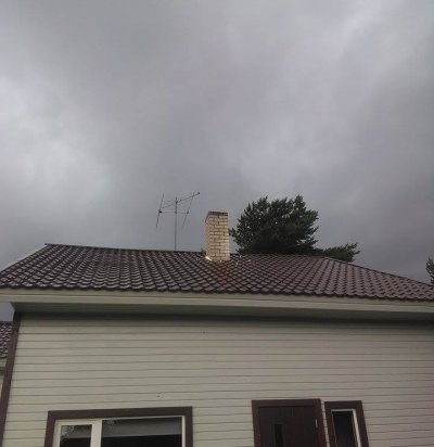 Katuse osaline rihtimine, roovise vigastuste parandus ja katkiste eterniitplaatide vahetus.