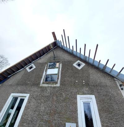 Katuse vahetus koos korstnate ülesehitusega kolmekordses majas. aluspindala 402 ruutmeetrit