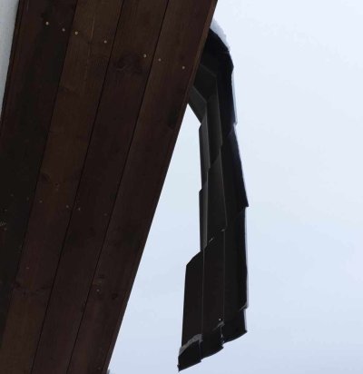 Ilmast tekkinud kahjustus, katuseplekk on osaliselt lahti