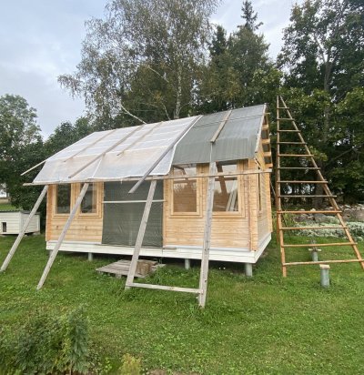 Aiamaja katuse, põranda ja uste paigaldamine