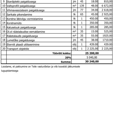 Lamekatuse kattematerjal ja paigaldus 47m2