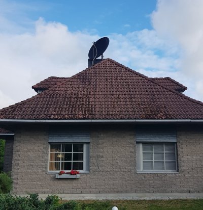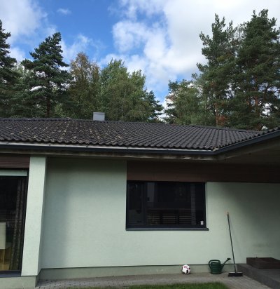 Eststeini Monieri kivikatuse puhastamine. Maja valmis 1994