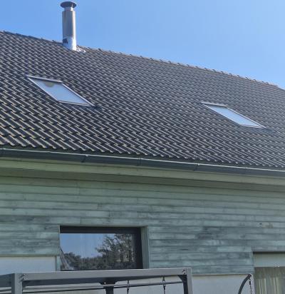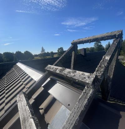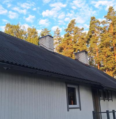 Vana talumaja katuse vahetus, all laastukatus, peal eterniit.