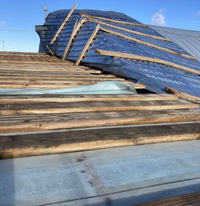 Olemasoleva eterniitkatuse konstruktsioonide eemaldus ja plekk katuse paigaldus Tartumaal, Vahi alevikus