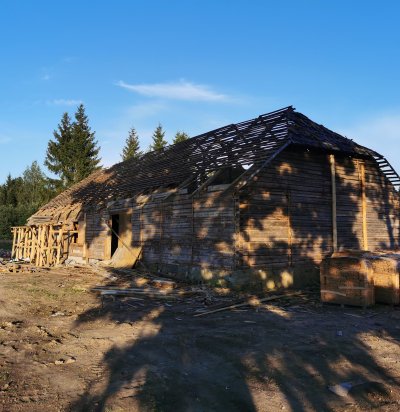Saunamaja lamekatuse lammutus ja viilkatuse ehitus