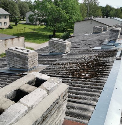 Eterniitkatuse vahetus ja korstnamüüride taastamine.