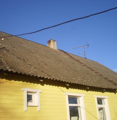 Katuse osaline rihtimine, roovise vigastuste parandus ja katkiste eterniitplaatide vahetus.
