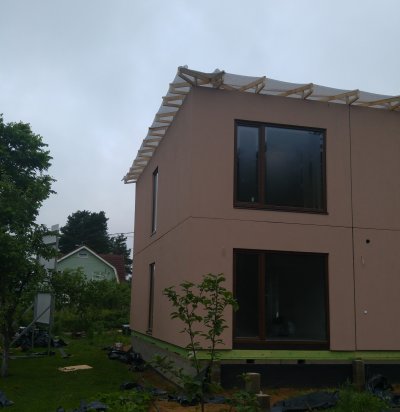 Paarismaja ühe katusepoole vahetus koos soojustuse ja vihmaveesüsteemidega