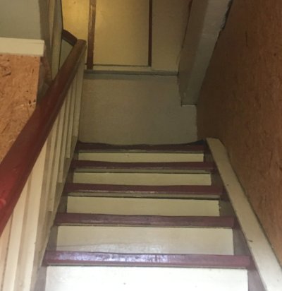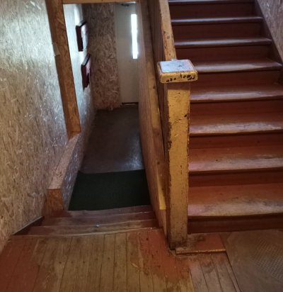 KÜ TREPPIKOJA PÕRANDA JA KÄSIPUU VANA VÄRVI EEMALDAMINE JA VÄRVIMINE.