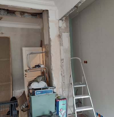 Vaja on plaatida vannitoas tualettpoti tagune ala. (Pärast toru vahetust). Parandada vannitoa uks.