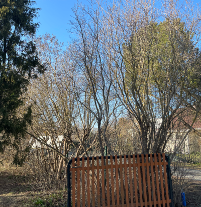 Ülekasvanud sireliheki lõikamine koos okste äraviimisega