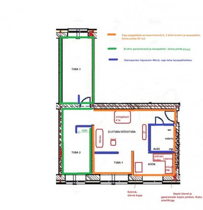 Köögiseinte ja põranda remont,vahekäigu,esiku seinte ja põranda remont
