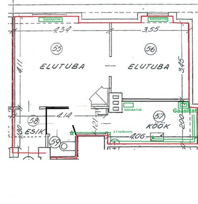 3-toaline korter (remonti vajavad 2 tuba + köök)
