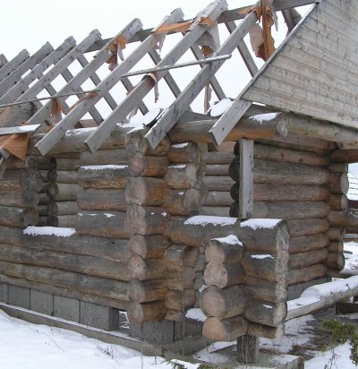 Palkhoone ehitus käsitsitööna kohapeal (sepikoda)