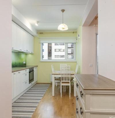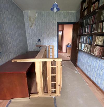 Korteris vanade laeplaatide demontaaz, uue ehitus osades seinte lagede värvimine, laminaatparkett põrandale.
