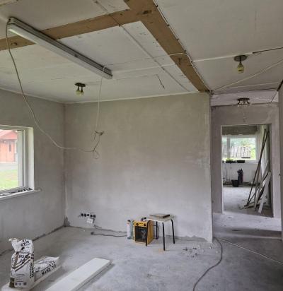 Magamistoa seina veekahjustuse likvideerimine ja tapetseerimine