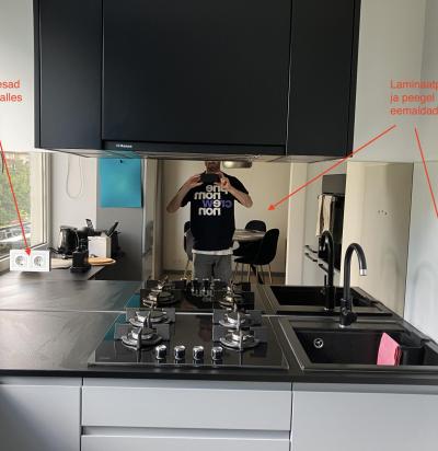 Köögi tagaseinast peegli ja laminaadi eemaldus ning taustvärvitud klaasi paigaldus