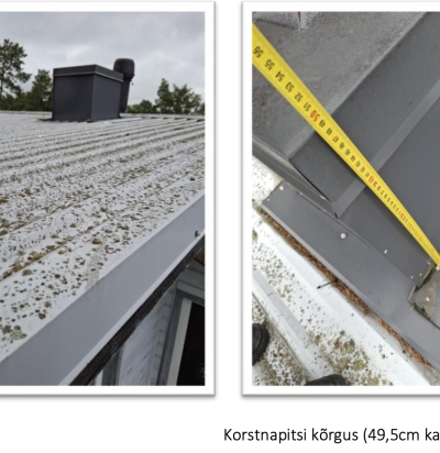 Valtsplekkkatuse 2 lekkekoha leidmine ja paranamine ning majal ühel küljel oleva vihmaveerennide parandus ( jääga paindunud räästast eemale). Vajadusel uuega asendamine. Umbes 8 m räästast