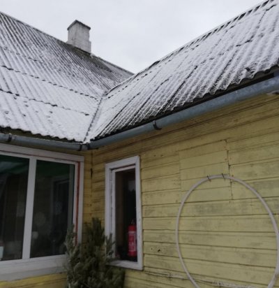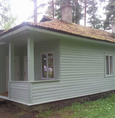 Maja puhastamine, puidu töötlemine tõrvaõliga ja aknaraamide värvimine