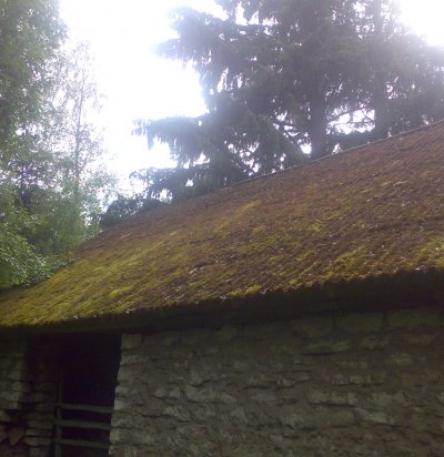 Palksaunale kivikatuse ehitus, korstna ladumine