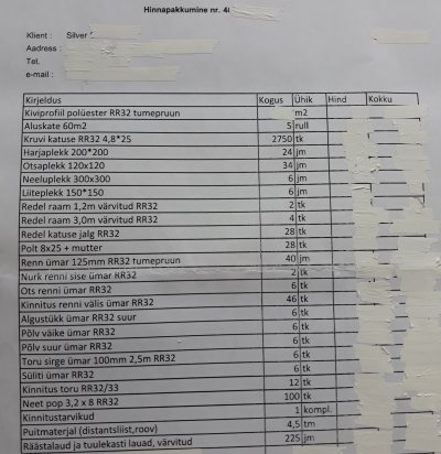 Plekk-katuse paigaldus,261m2,vana eterniidi eemaldamine,alla jääb sindel