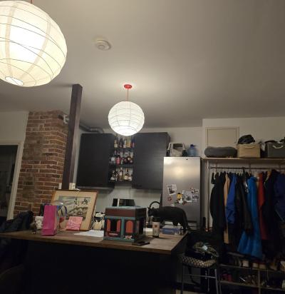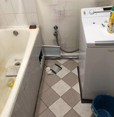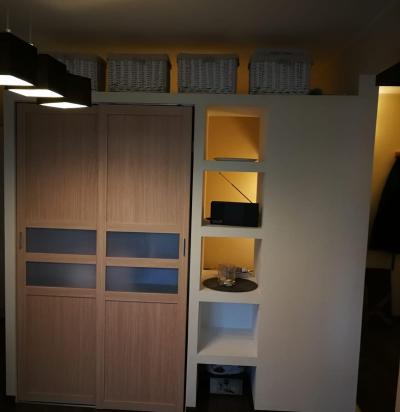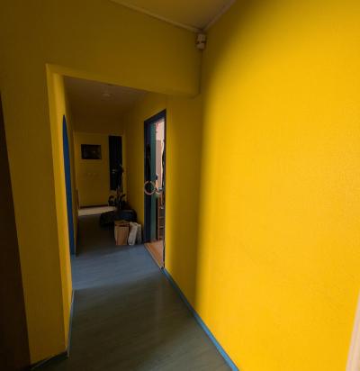 Korteris duŝinurga, integreeritud külmkapi ja garderoobiukse vahetused; seinte värvimine