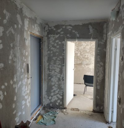 Tulekindla kipsseina ehitus + viimistlus + ukse paigaldamine + teiste korteriuste palede viimistlus