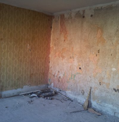 Seinalt vana kips maha, uus asemele (veekahjustuse likvideerimine)