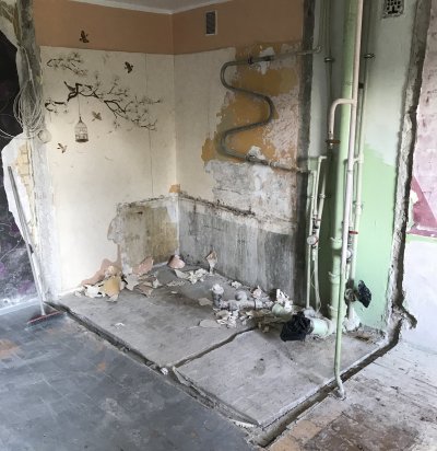 Korteri mittekandva seina lammutamine + põranda kipsi valu + parkett maha