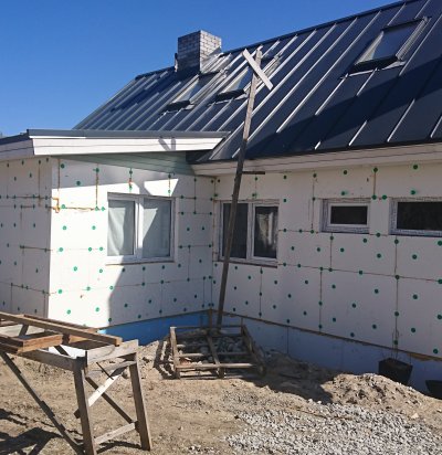 Eramaja fassaadi soojustamine osaliselt peno ja laudisega