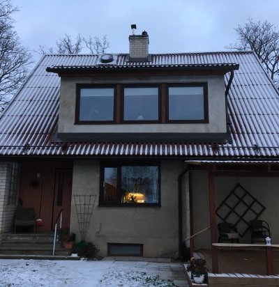 Maja fassaadi väiksemad krohviparandused ja kogu krohvitud fassaadi üle värvimine