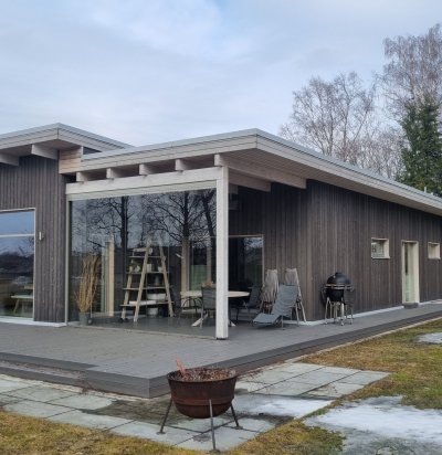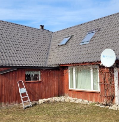 Maja fassaadi ehitus, vundamendi ja katuse soojustamine, plekk-katuse paigaldus