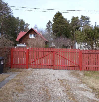 Tänavaäärne puitlippidega piirdeaed koos auto- ja jalgväravaga (21,5 m)