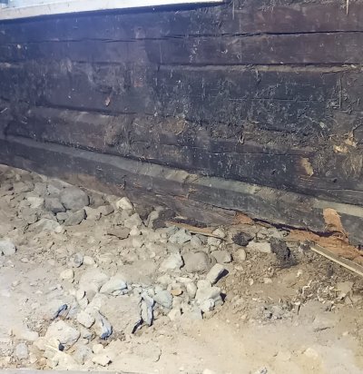 Vana palkmaja alumise palgirea vahetus ja vundamendi parandus
