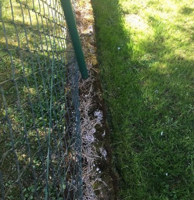 Aia ehitus. Kuus aiaposti 40x60 ja 6 rohelist võrkmoodulit.