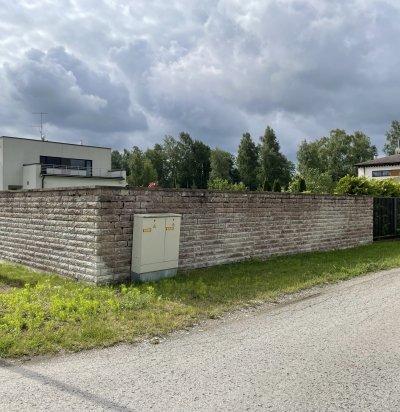 Puitaia ehitus ( püstlippaed ca 150cm kõrgusega )pikkusega 75 m. Koos jalgvärava ja autoväravaga