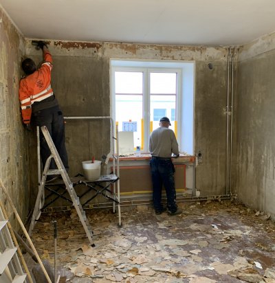 Küttetorude demontaaž ja torude paigaldus keldrikorrusele.