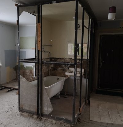 Lammutustööd, uute seinte ja tualettruumi ehitamine, uste ümbetõstmine