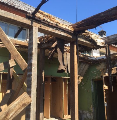 Sissevajunud katuse mahavõtmine ja hoone sest lammutamine ja puhastamine.