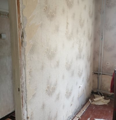 Pooliku kipsseina lammutamine