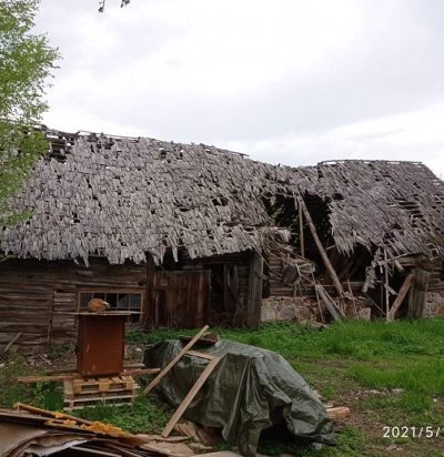 Vana eramu voodri ja katuse lammutamine.