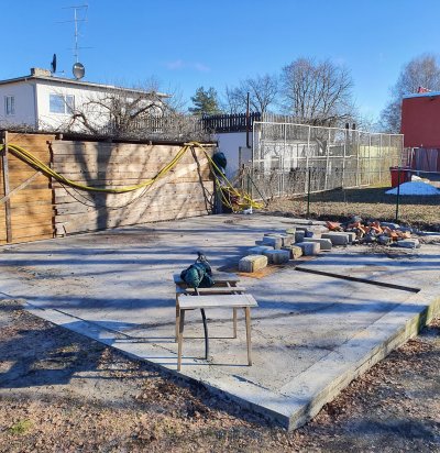 Sauna põranda valamine, torutööd ja seinte ehitus