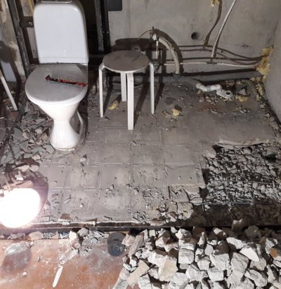 Põranda lammutus. Vannitoa ja WC karbi lammutus