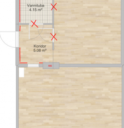 Vannitoa ja koridori lammutamine