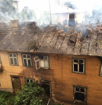 Tulekahjus kannatada saanud maja lammutamine Rakveres.