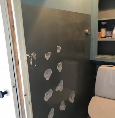 Vannitoa-WC poksi lammutusjäätmete koristus