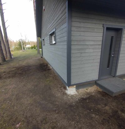 Pinnase tasandamine eramaja ümber, mullatööd, kivisillutise paigaldamine sissesõiduteele
