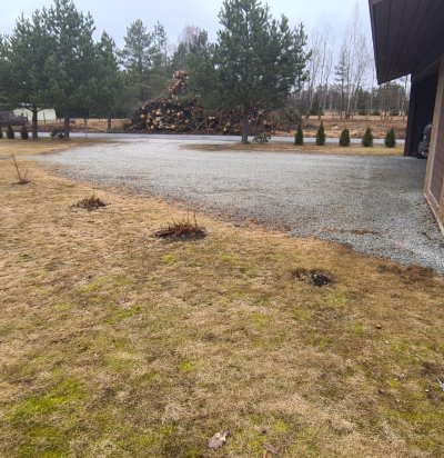 Tänavakivi maha, pinnase tõstmine u 10cm, uus kivi, mis kannatab autot, uue kivi paigaldus (ei ole ise kive ostnud) + töö käigus tehnoloogiad liivamurelaste vastu (sipelgad) +