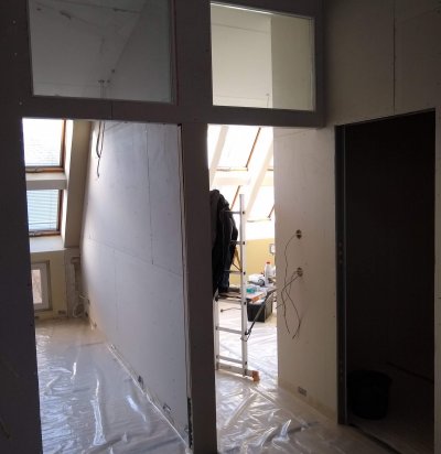 Kahe toa seinte krohvimine, pahteldamine ja värvimine, laeparandused